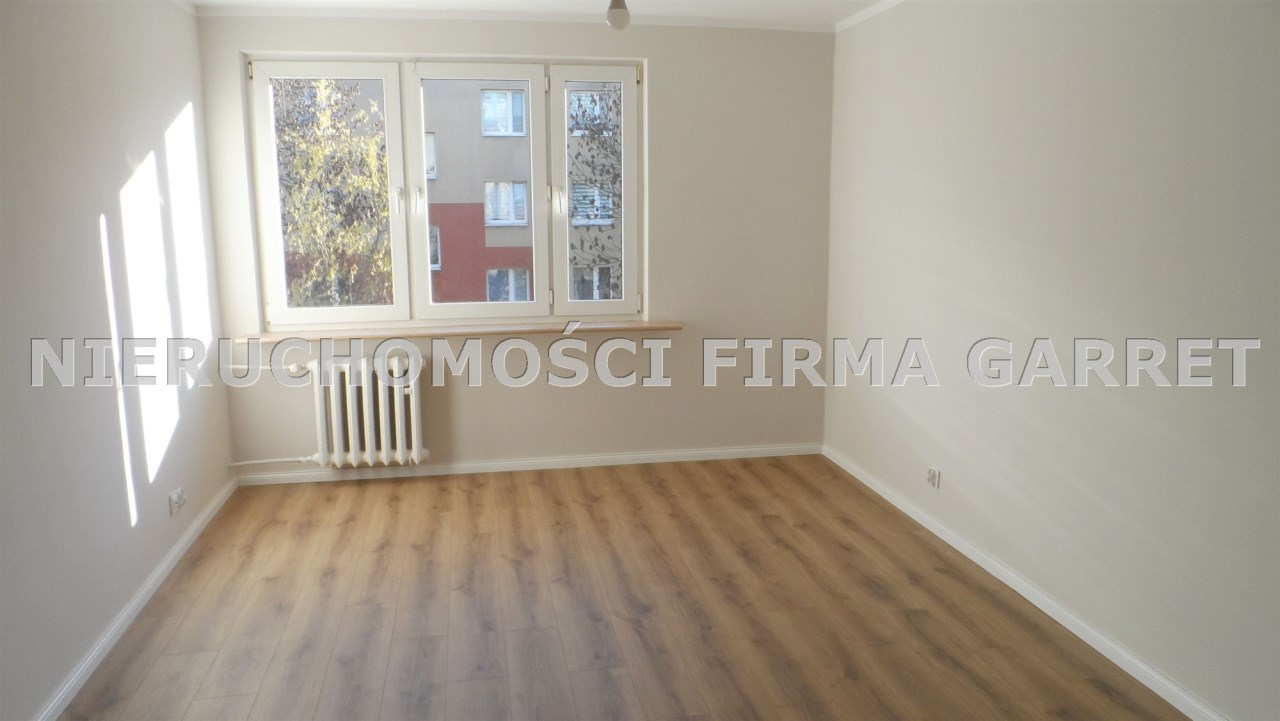 Mieszkanie położone na 3 piętrze 4 piętrowego bloku. Na ogólną jego powierzchnię 44,33m2 składają się: 2 oddzielne pokoje, ( 19,6m2; 9,40m2), kuchnia jasna ( 6,15m2), łazienka (3m2) , przestronny przedpokój ( 6,18m2) z miejscem na dużą szafę garderobianą . Mieszkanie dwustronne o ekspozycji wschodniej i zachodniej, bardzo jasne, przestronne. W mieszkaniu przeprowadzony był generalny remont łącznie z wymianą wszystkich instalacji. Wymienione są drzwi wejściowe na antywłamaniowe, na podłogach w pokojach położone panele, w kuchni i przedpokoju płytki ceramiczne, na ścianach gładzie gipsowe pomalowane na jasne neutralne kolory. W kuchni nowe meble wraz ze sprzętem AGD. Ogrzewanie miejskie, woda centralnie ciepła. Czynsz ok. 500zł/1os. łącznie z funduszem remontowym, c.o. zaliczką na wodę ciepłą i zimną . Polecam. Więcej informacji pod nr tel. 508 609 966 Maria Janczulewicz NIERUCHOMOŚCI FIRMA GARRET